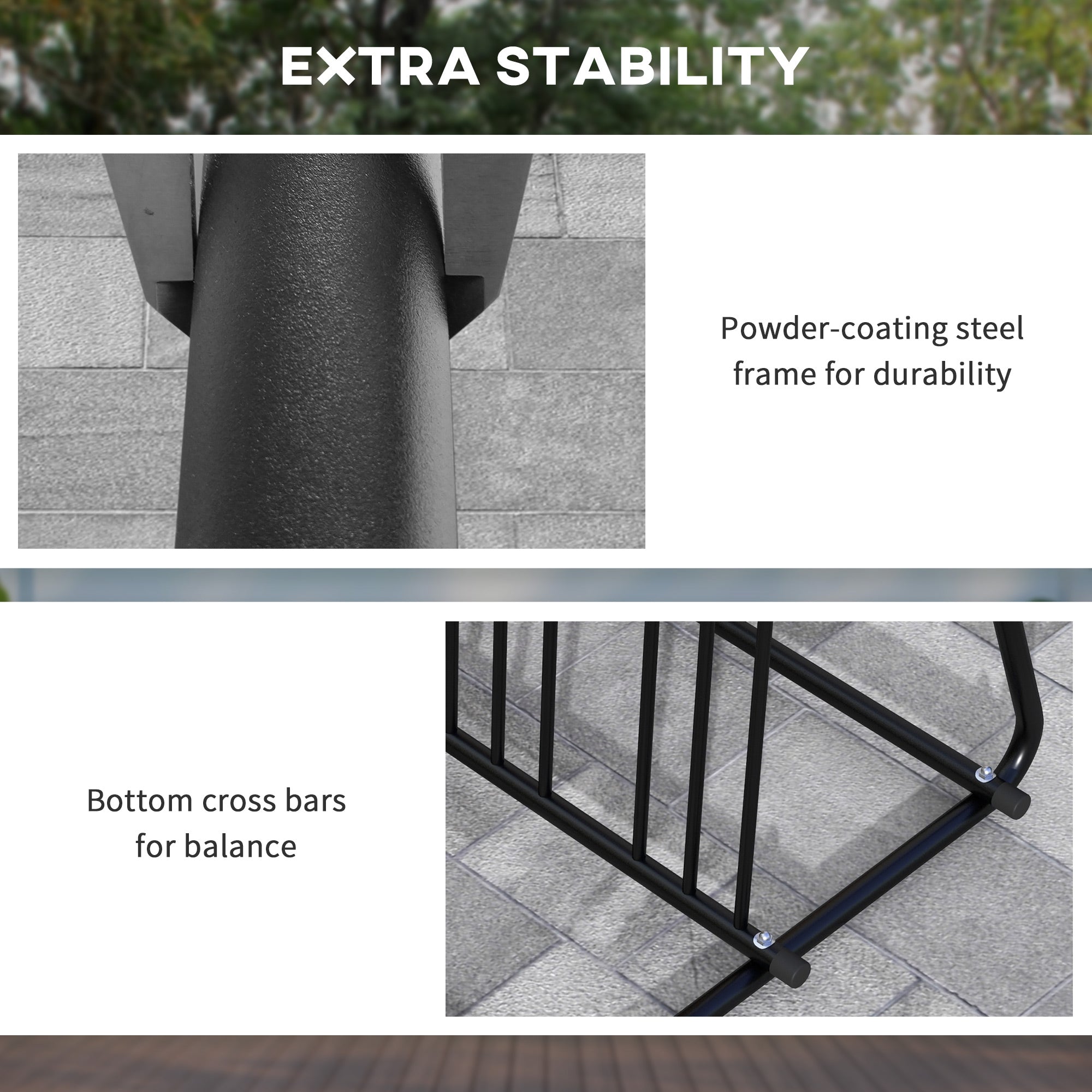Store bicycles securely with this DURHAND bike rack for garage, which can hold up to six bikes. Suitable for sheds, garages and gardens, it'll keep your bike upright, avoiding damage and scratches to its frame. Made from heavy-duty steel, the vertical bike stand is covered in powder coating, making it suitable outdoors. The bottom cross bars provide better balance, with the vertical bars separating the bikes to avoid overcrowding. A great way to keep your bikes organised whilst saving space.