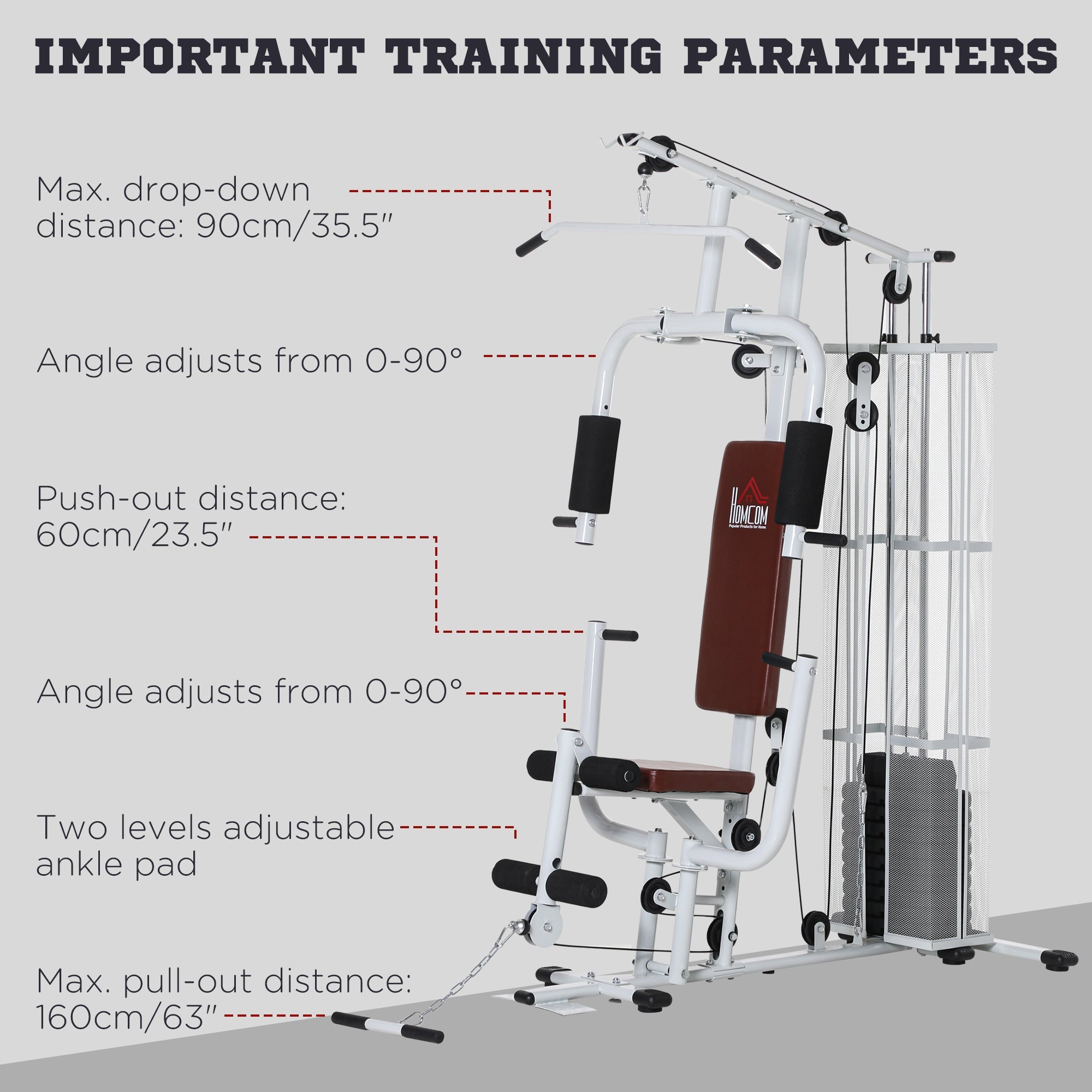 This multi-function home gym system allows you to take control of your home or office workout routine. Train your entire body with this machine, such as back pull bar, butterfly arm, lower pull bar function, bend arm training, kick training, You can use it to train your arms, legs, waist, hips, and abdomen. Enjoy exercising at home to keep your body healthy.\n
