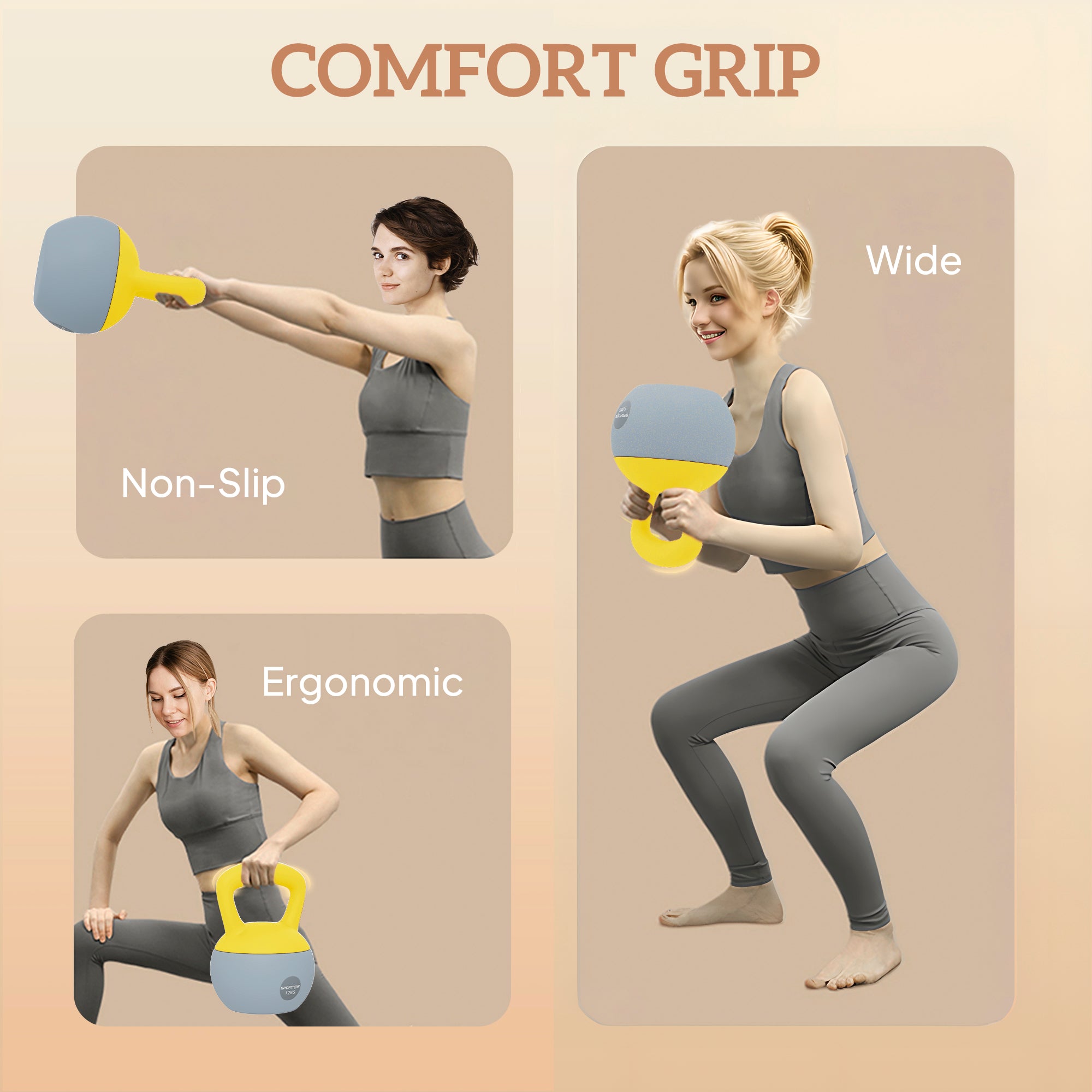 PURE 12KG Soft Kettlebell, Kettlebell with Non-Slip Handle for Home Gym, Weight Lifting, Strength Training, Yellow/Grey