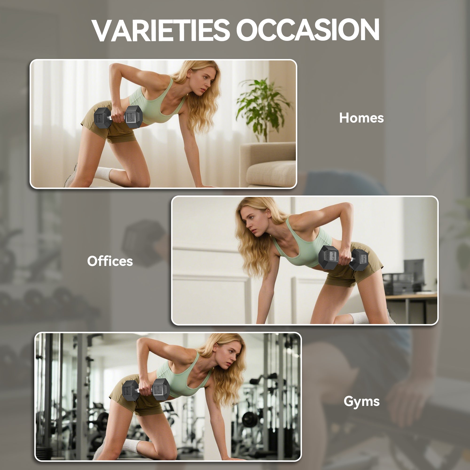 Strengthen your muscles in the most effective and easiest ways - go for this dumbbell set from HOMCOM. The 25kg weight is suitable for those accustomed to the heaviness only and can be used almost anywhere in the home and outdoors thanks to the small size. The frame is steel for a strong core and features knurl indents for grip. Both ends come in a weighted, hexagonal shape, so it doesn't roll away. The weight number is carved into the protective rubber cap for you to know which to use.