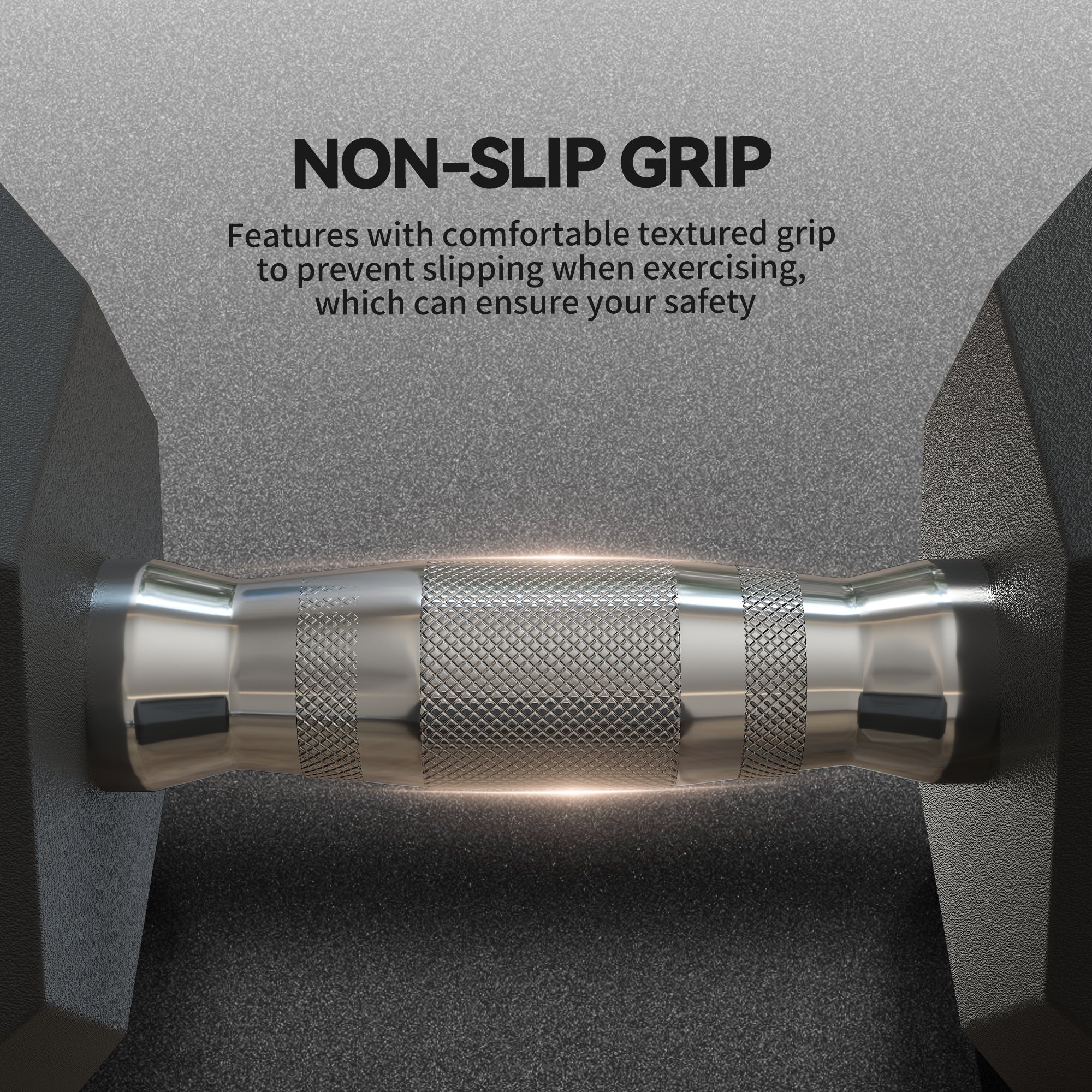 Strengthen your muscles in the most effective and easiest ways - go for this dumbbell set from HOMCOM. The 30kg weight is suitable for those accustomed to the heaviness only and can be used almost anywhere in the home and outdoors thanks to the small size. The frame is steel for a strong core and features knurl indents for grip. Both ends come in a weighted, hexagonal shape, so it doesn't roll away. The weight number is carved into the protective rubber cap for you to know which to use.