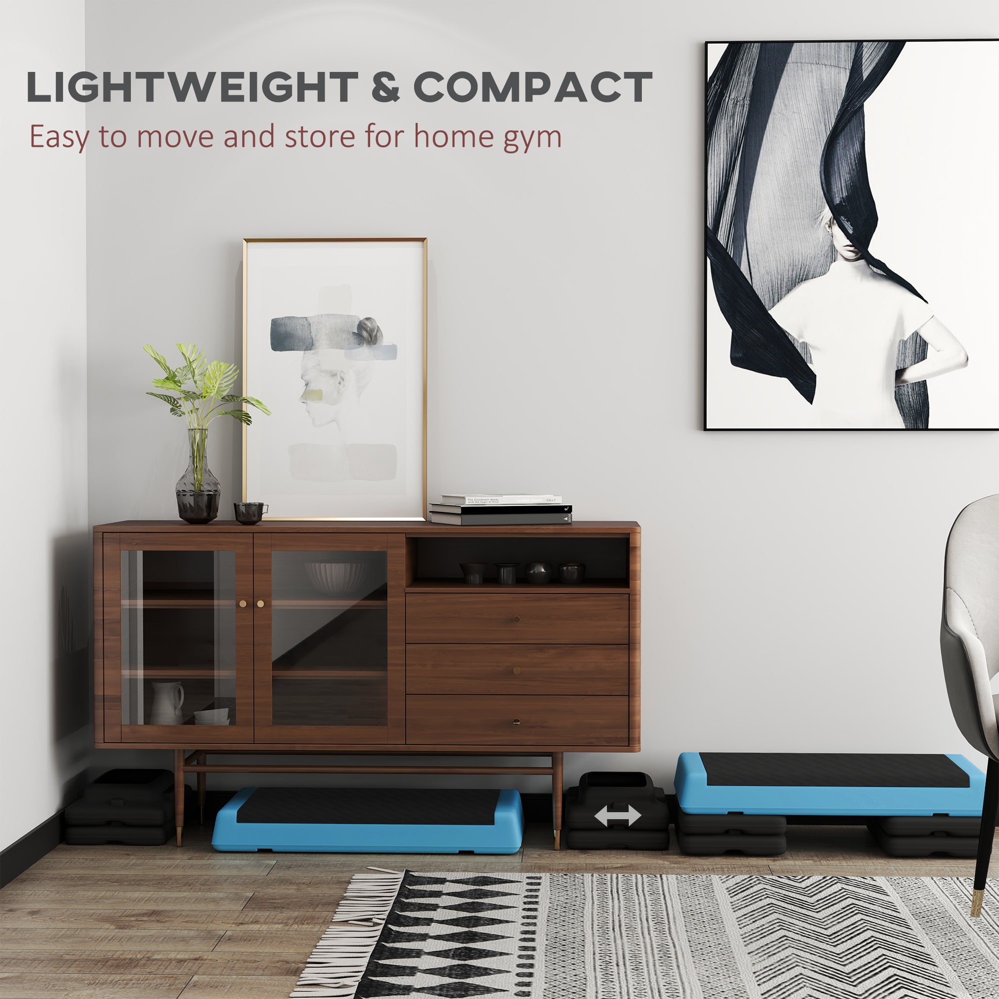 Step up your fitness with the SPORTNOW exercise stepper for home and gym! Adjust between three heights (10.5 cm, 15.5 cm or 20.5 cm) to suit your level. Great for step-ups, squats, push-ups and more to burn calories and build muscle. The anti-skid grooved EVA surface and stable base with non-slip footpads ensure safe workouts. Easily move and store it to save space. Transform any corner into a mini fitness centre at home, the office or anywhere!