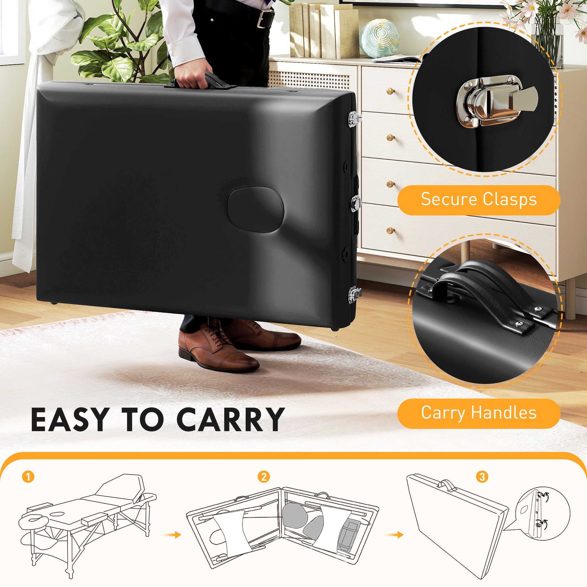 Comfortable beauty treatments forever more, with this HOMCOM massage table. Adjust the height between 64-89 cm, the back between 0° and 60° and the face cradle between -90° and 90° - it's easy to set it to the positions you need. The large padded bed, face cradle, hand pallet and padded armrests ensure full-body relaxation. When not being used, you can fold this beauty bed into a portable case, with integrated handles, to carry around easily.