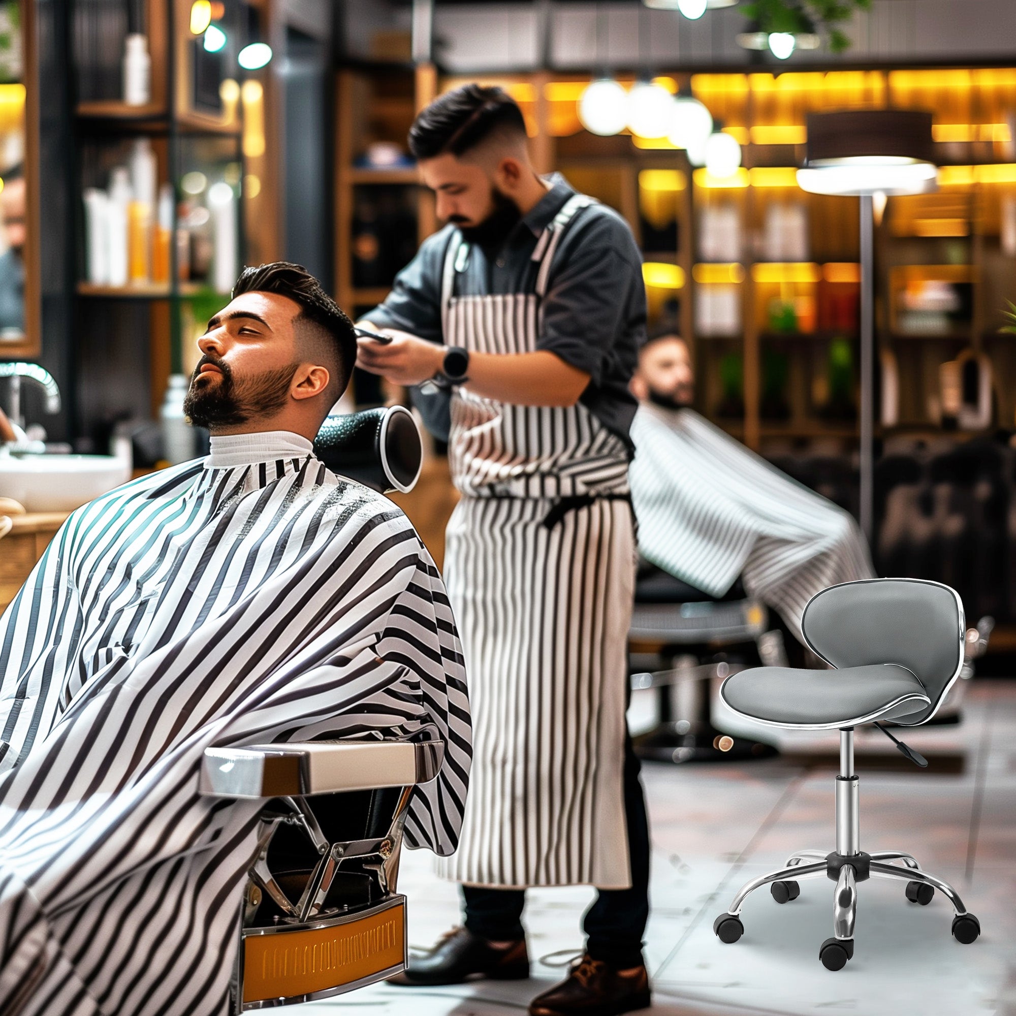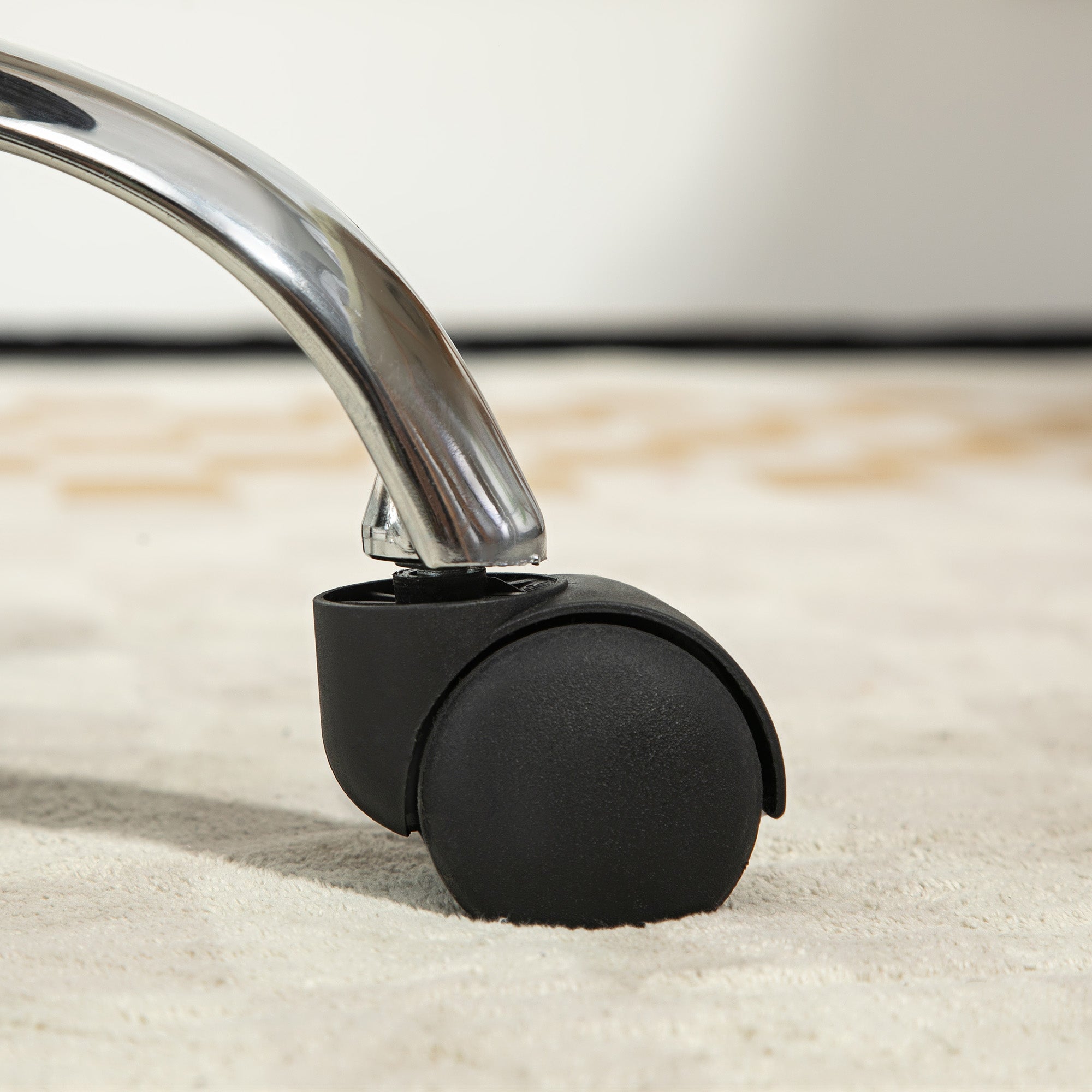This HOMCOM workshop stool puts you at just the right height, helping to create great working circumstance. The firm back keeps your spine in proper form and the padded seat cushion gives you the comfort for the longer durations. With fives wheels, this hairdressing chair is easy to scoot around or slide around the working area. The polished chrome base and sleek design is suitable for most décor.
