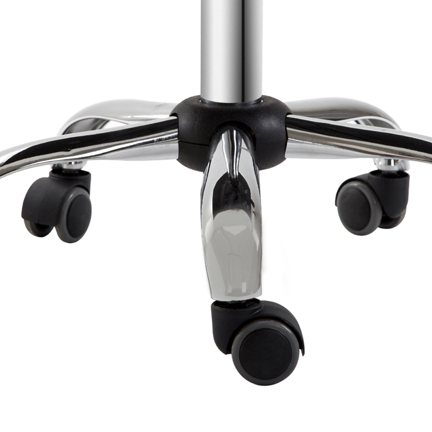 This HOMCOM workshop stool puts you at just the right height, helping to create great working circumstance. The firm back keeps your spine in proper form and the padded seat cushion gives you the comfort for the longer durations. With fives wheels, this hairdressing chair is easy to scoot around or slide around the working area. The polished chrome base and sleek design is suitable for most décor.