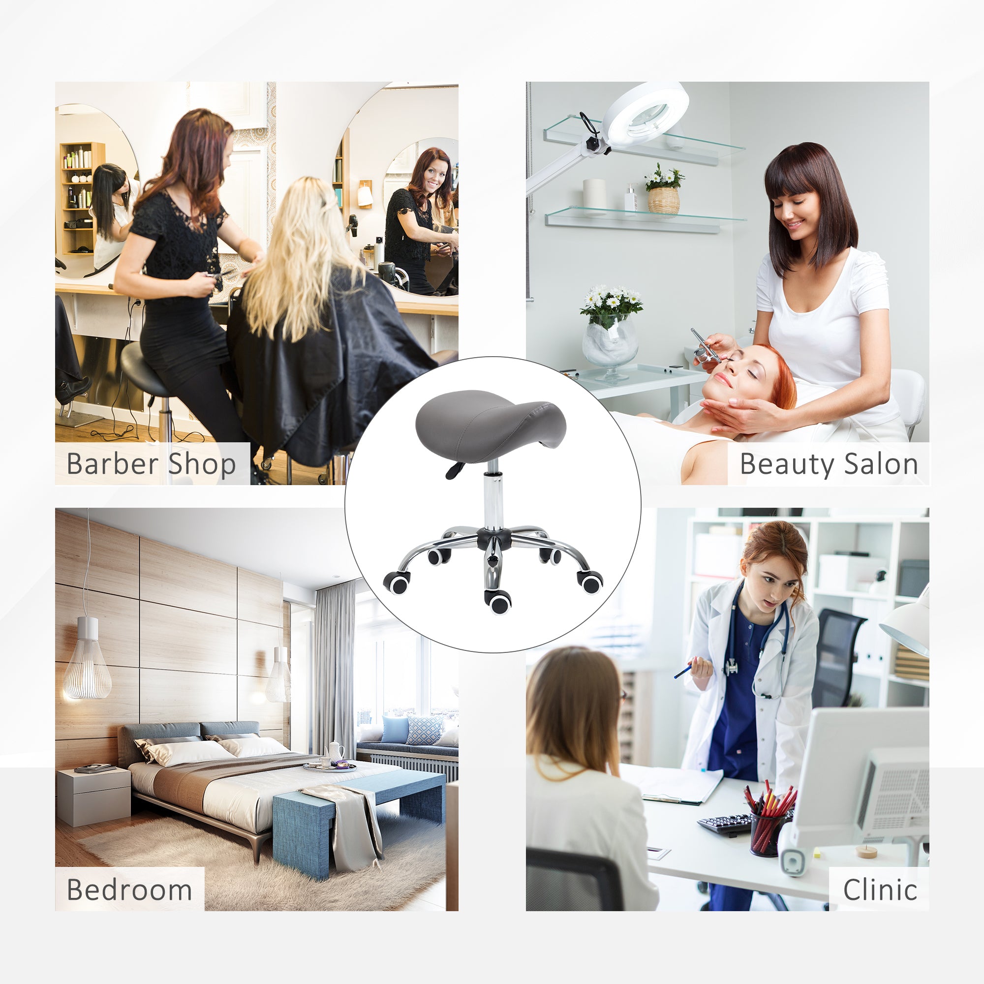 PURE Cosmetic Stool 360° Rotate Height Adjustable Salon Massage Spa Chair Hydraulic Rolling Faux Leather Saddle Stool, Grey
