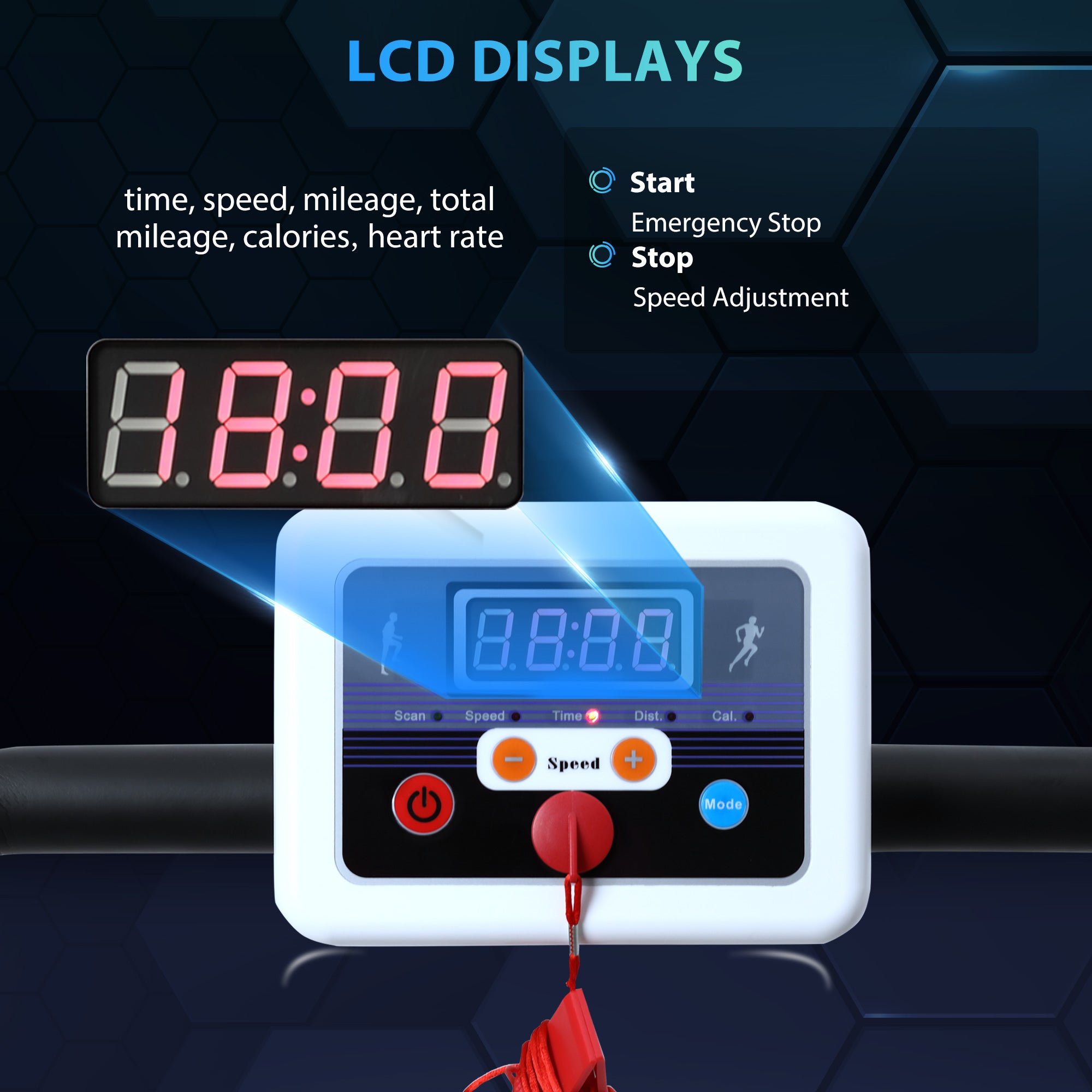 Get your fitness into gear with this walking treadmill from HOMCOM. The portable treadmill helps you to get fit and increase your stamina. The LCD monitor can also track your time elapsed, distance, speed, and calories burnt, which will keep you more focused whilst working out. The emergency button and safety key can immediately stop the walking machine immediately. The compact treadmill with two wheels can also be folded so that it is easy for storage when not in use.