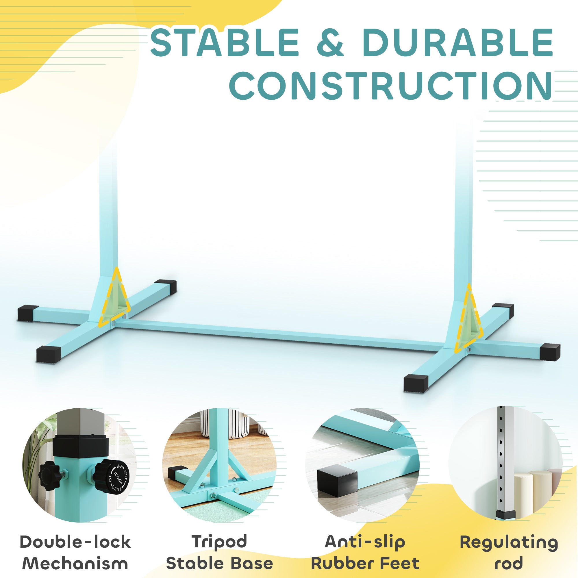 Gymnastics at home? Absolutely – with this HOMCOM kids gymnastics bar! Designed to grow with them, the height adjusts across 13 levels from 92–150cm, great for all ages and abilities. A strong steel frame and T-shaped base keep it stable through every flip and spin. With its fun light blue colour, it's a stylish way to boost balance, strength and coordination – right at home!