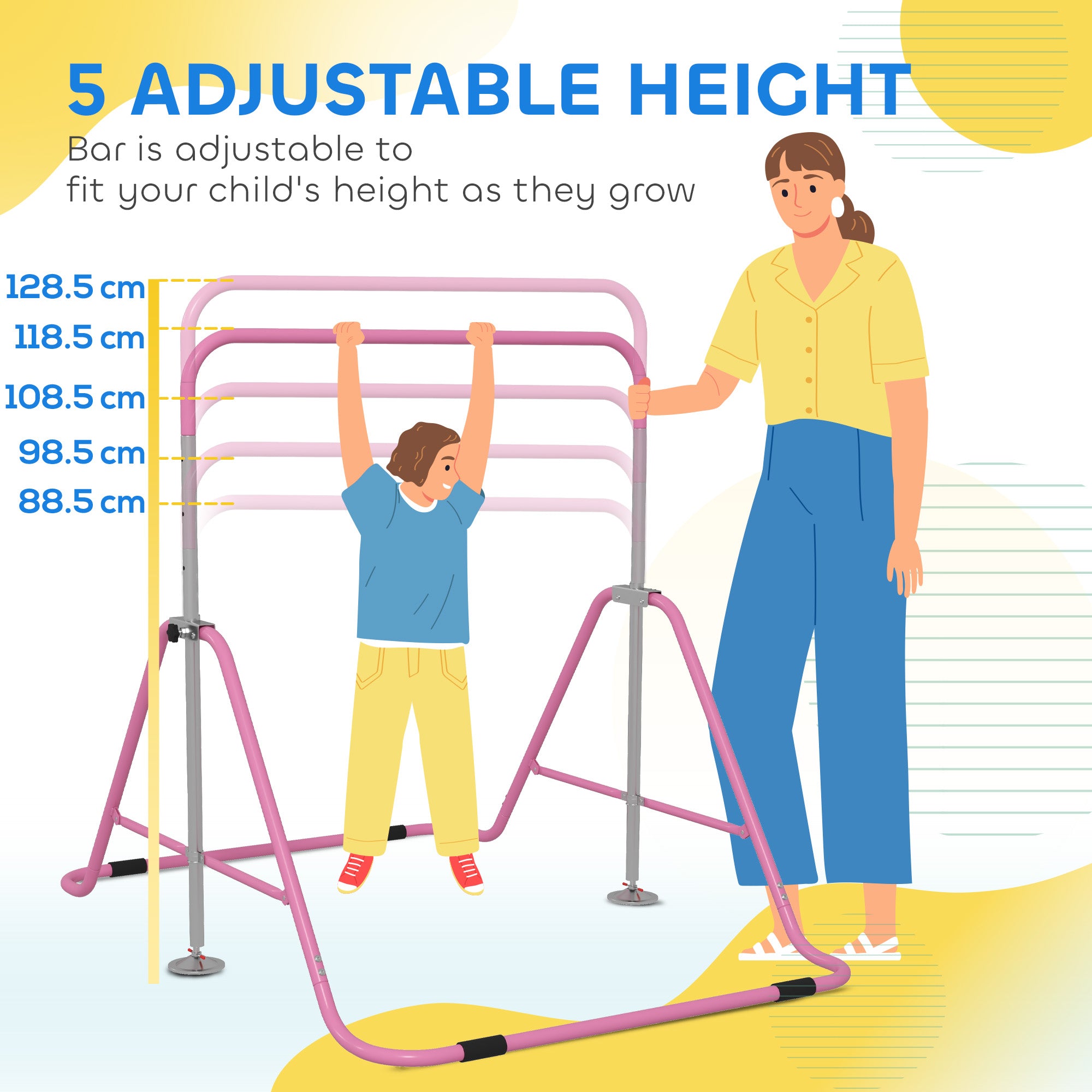Unleash your child's inner gymnast with the HOMOM kids gymnastics bar. Designed to inspire fun and build strength, this gymnastics bar is fantastic equipment to stay active. The gym bar's adjustable height ensures it grows with your child, providing endless enjoyment. Great for home use, this gymnastic bar invites your kids to swing, climb and master their skills safely.