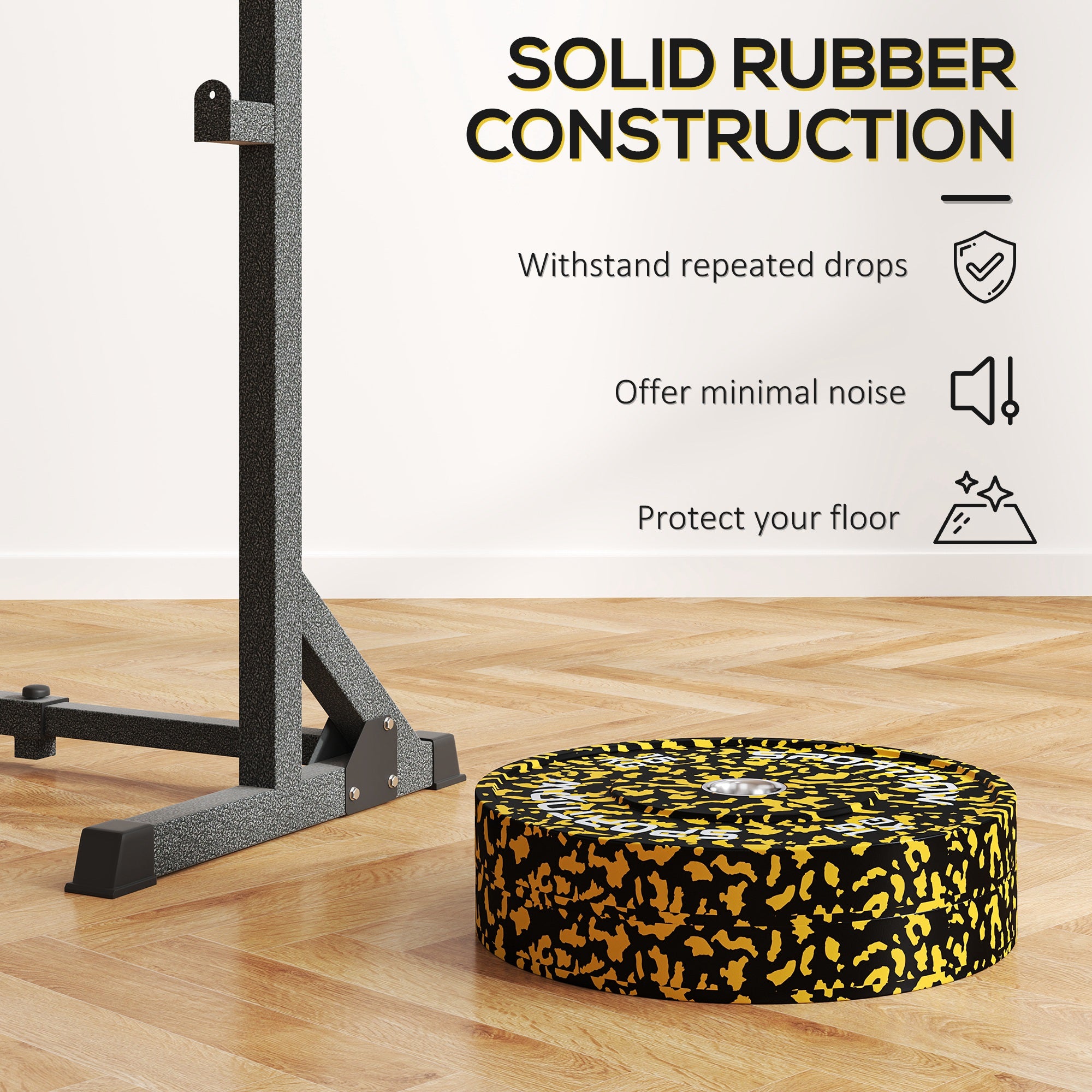 Elevate your gym sessions with the SPORTNOW Olympic barbell weights set, crafted from solid rubber for minimal noise and maximum resilience. Each plate features a two-inch centre hole, ensuring a snug fit for Olympic bars. The clear weight markings allow for quick selection. Great for varied weightlifting routines from squats to bench presses!