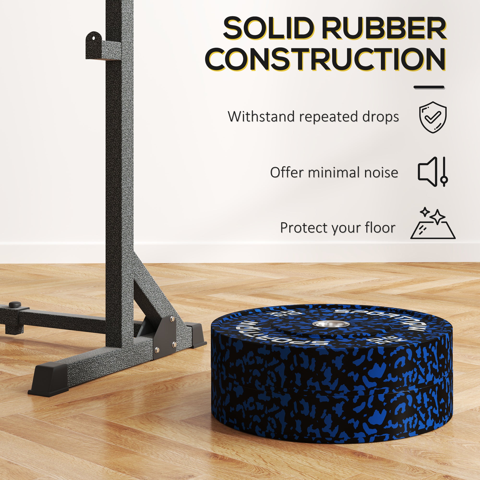 Elevate your gym sessions with the SPORTNOW Olympic barbell weights set, crafted from solid rubber for minimal noise and maximum resilience. Each plate features a two-inch centre hole, ensuring a snug fit for Olympic bars. The clear weight markings allow for quick selection. Great for varied weightlifting routines from squats to bench presses!