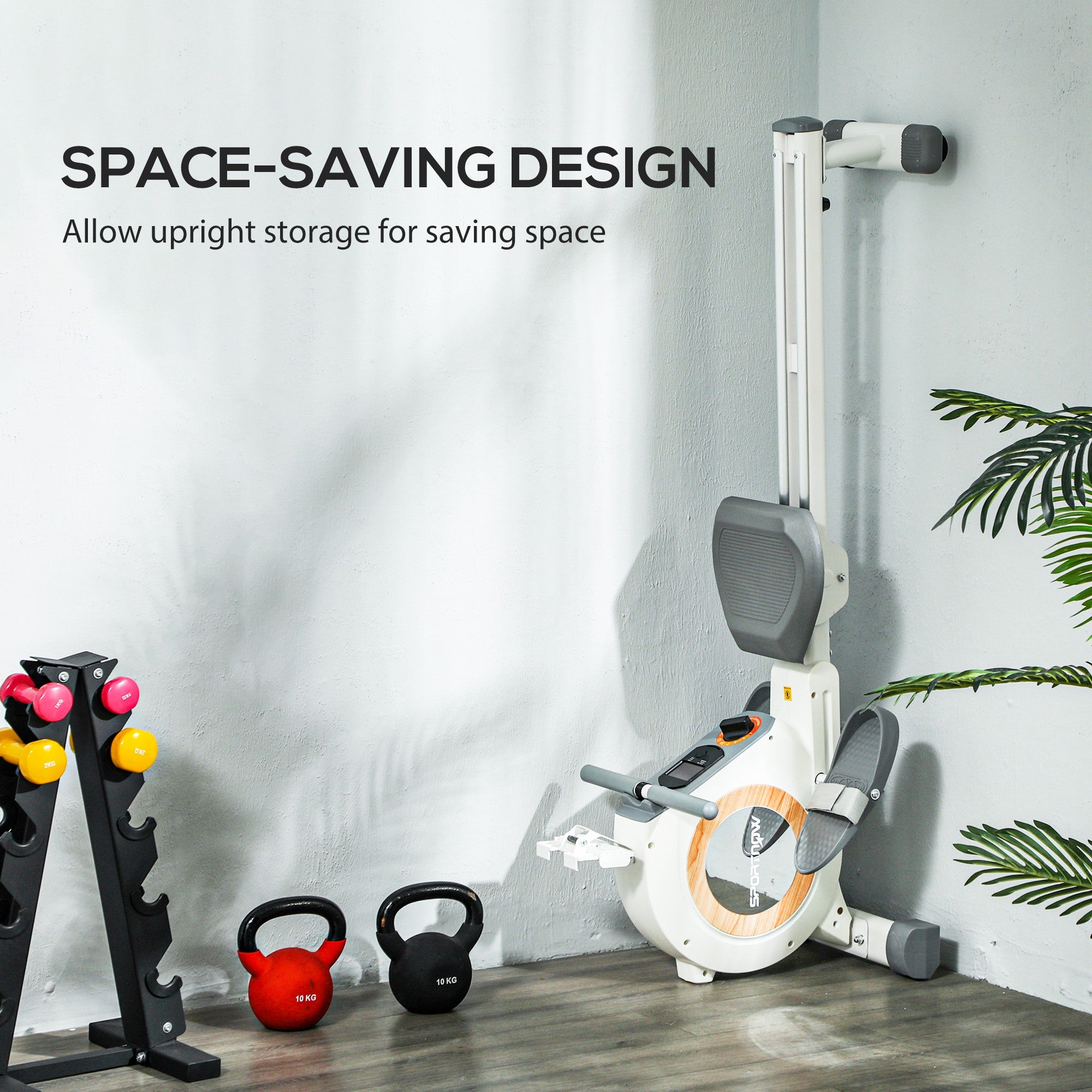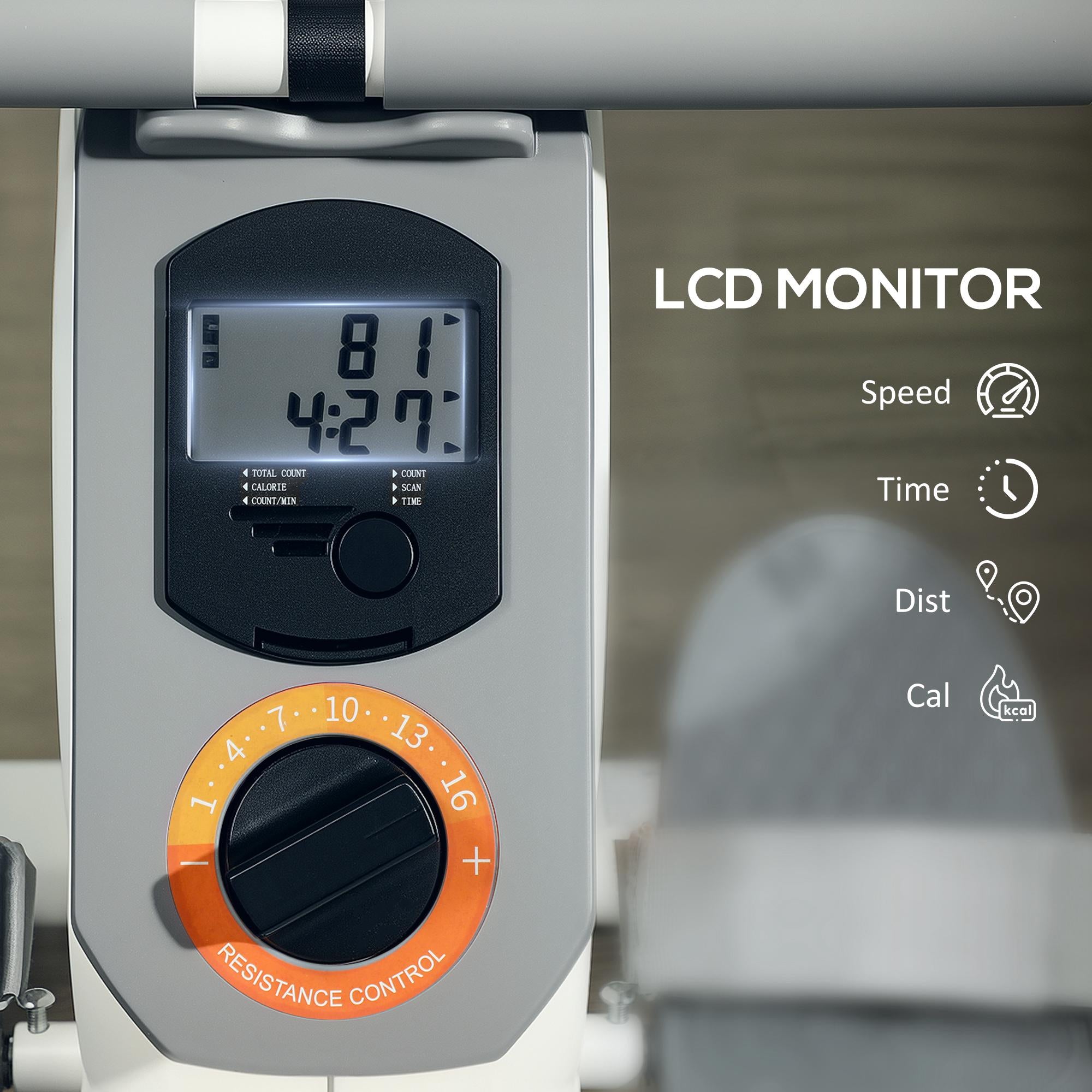 PURE Rowing Machine, 16-Level Magnetic Rower Machine with LCD Monitor and Phone Holder, White