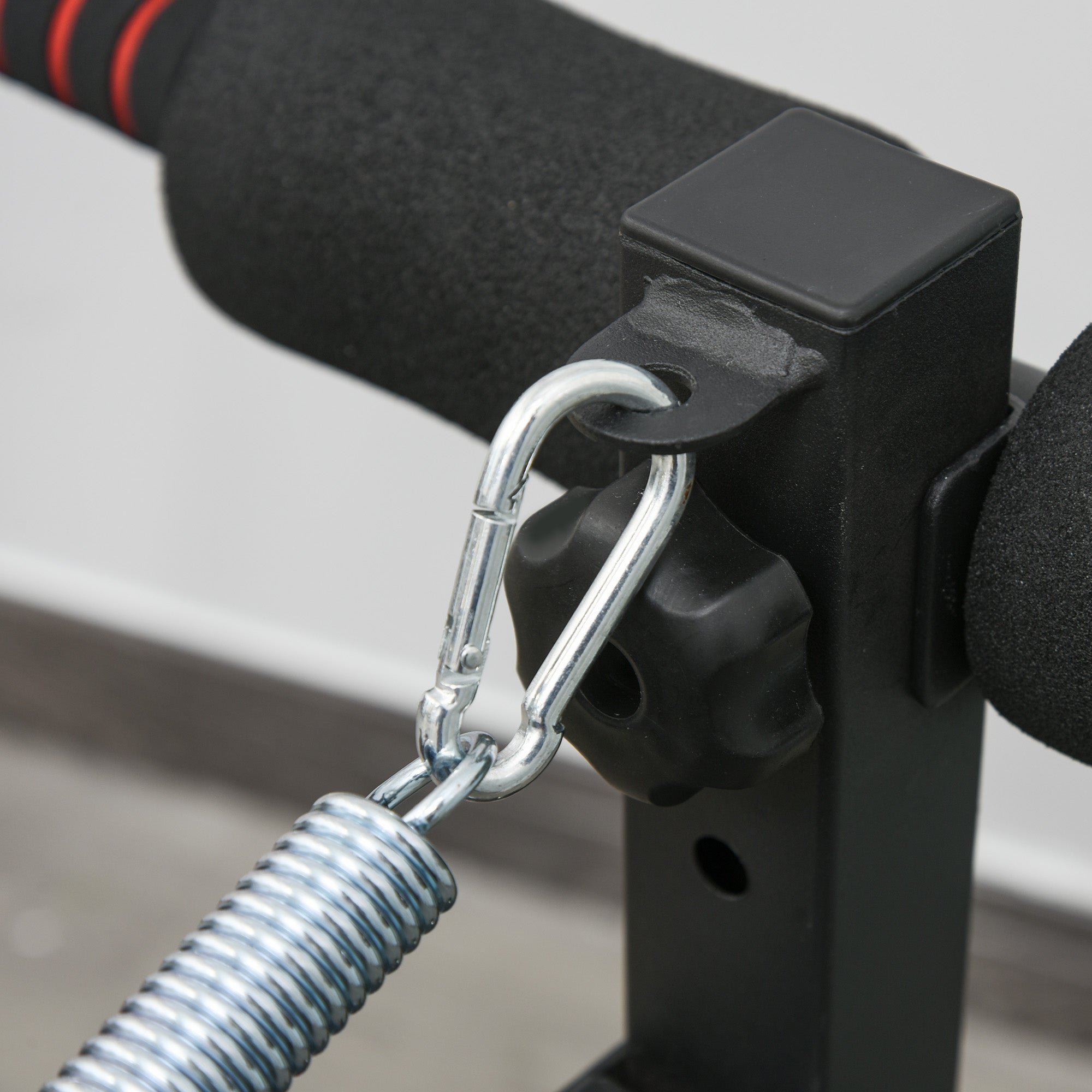 This HOMCOM sit-up bench will be your best choice to get the perfect shape. It can be used to work out your waists, abs, legs, and arms in daily exercise. It’s great for home, office and gym use. Equipped with hooks for holding 2 tension ropes allow you personally control the workout intensity. Solid steel construction in black finish and stay fresh in years to come. Spend just a few time a day on this machine and you'll start to see results and get the dream body you want.