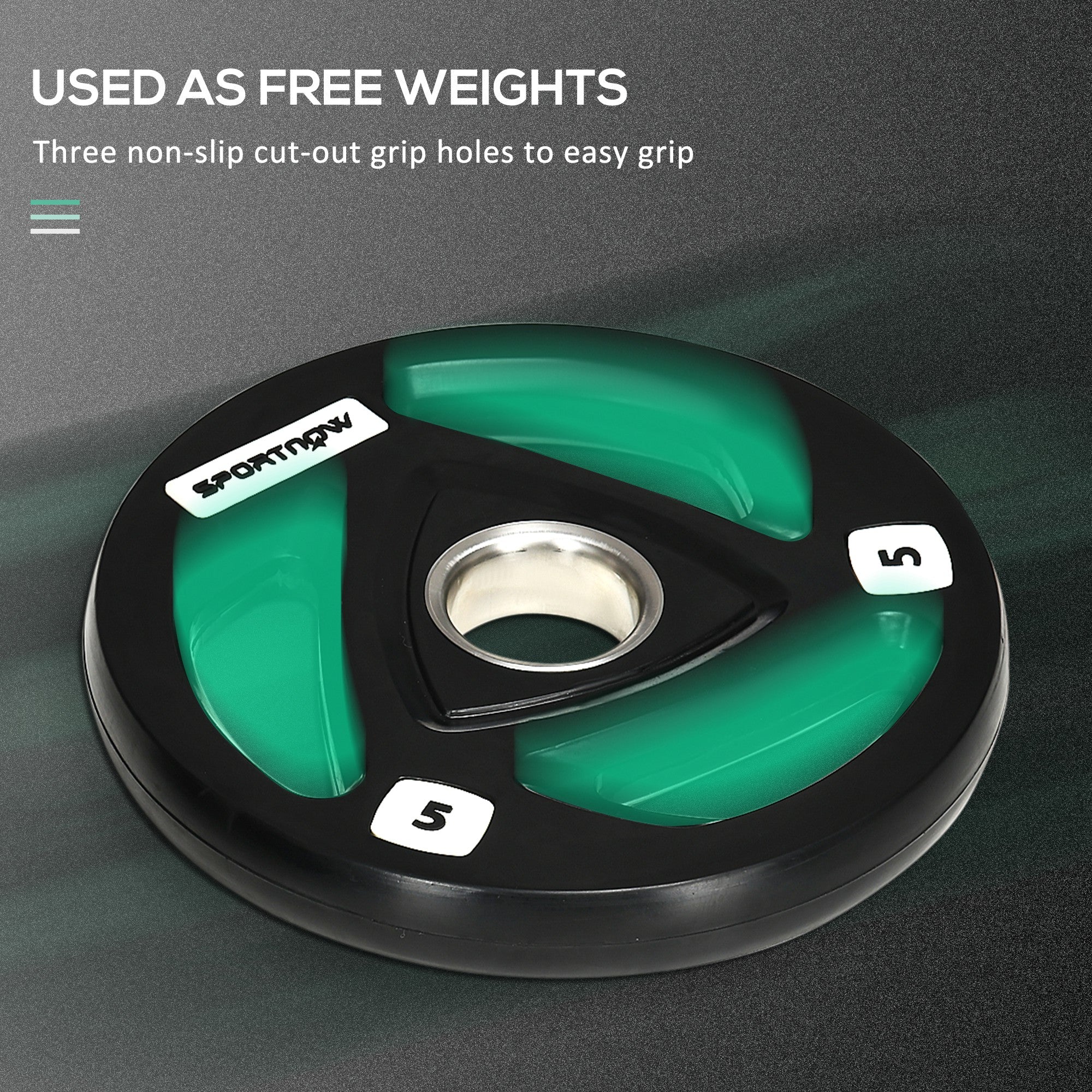 Keep active with the SPORTNOW tib bar, which comes with two 5kg and two 10kg weight plates, designed to strengthen your leg muscles. Featuring a snap fastener and a limit pin, the weight plates stay firmly on the bar – no worries of them falling off. Plus, with four foam pads, you’ll have extra comfort to maximise your workouts. Weight plates have three grip holes, so you can use them separately for lateral raises, plate rotations, chest presses and more.